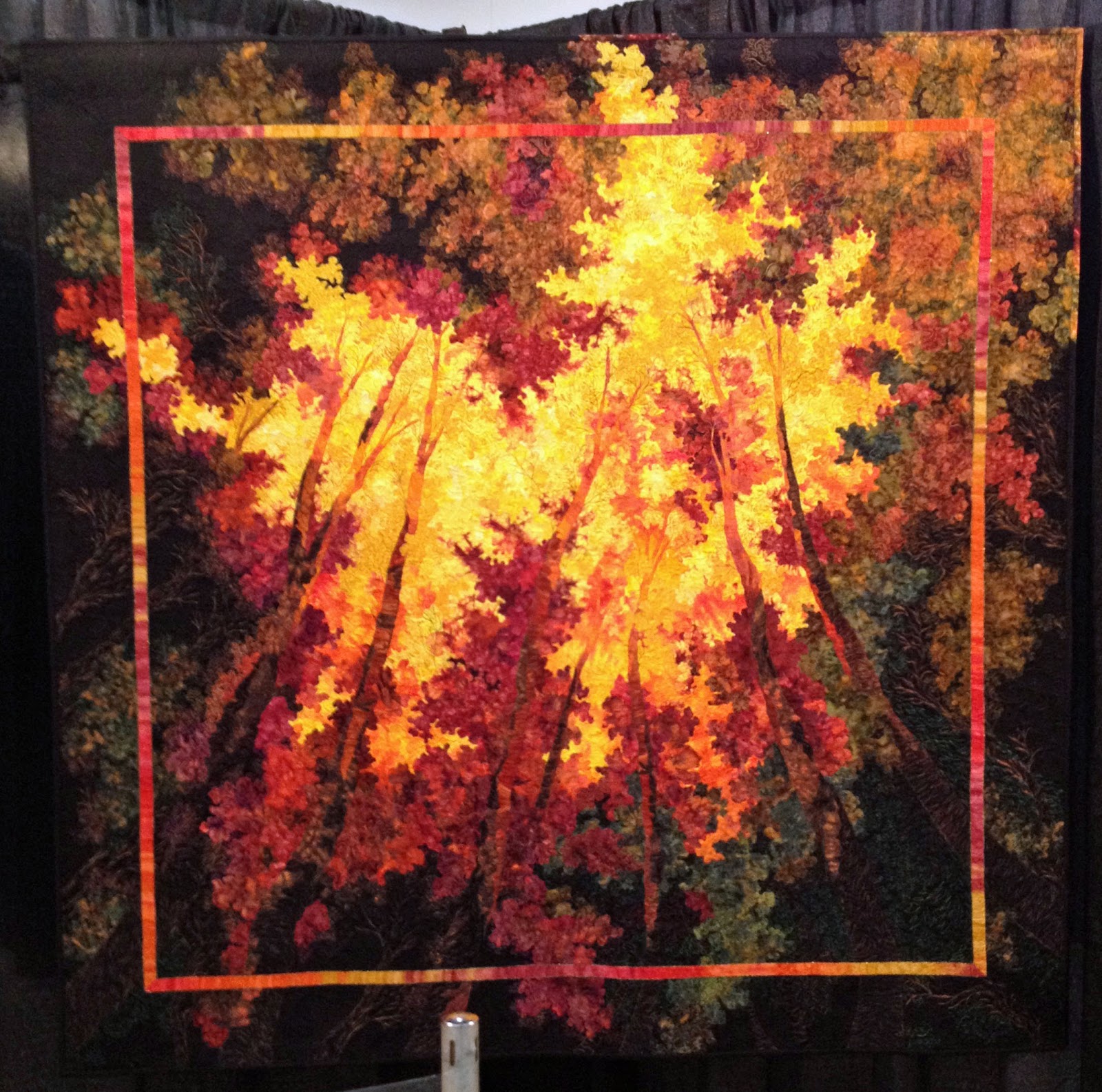 I plan to set the quilt with a solid color and put a solid border around that. I'm thinking a dark red would be nice...or maybe a brown or dark blue. Thoughts?